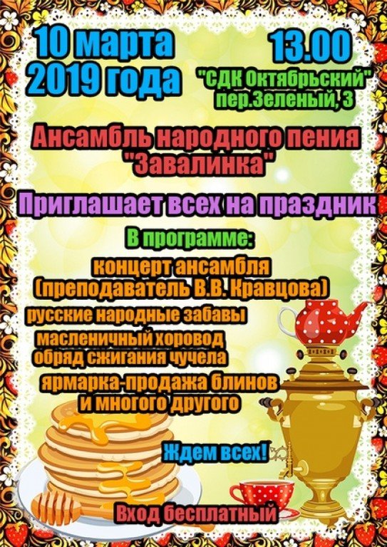 Ансамбль народного пения «Завалинка» приглашает всех на праздник