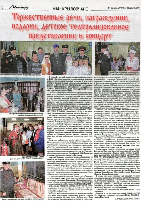 В теплой, уютной очень домашней обстановке в СДК «Октябрь» прошли традиционные Новомихайловские Рождественские встречи. И все здесь было: и торжественные речи, и награждение, и подарки, и детское очень трогательное театрализованное представление о Рождении Господа Иисуса Христа, и веселый концерт, и праздничное чаепитие.